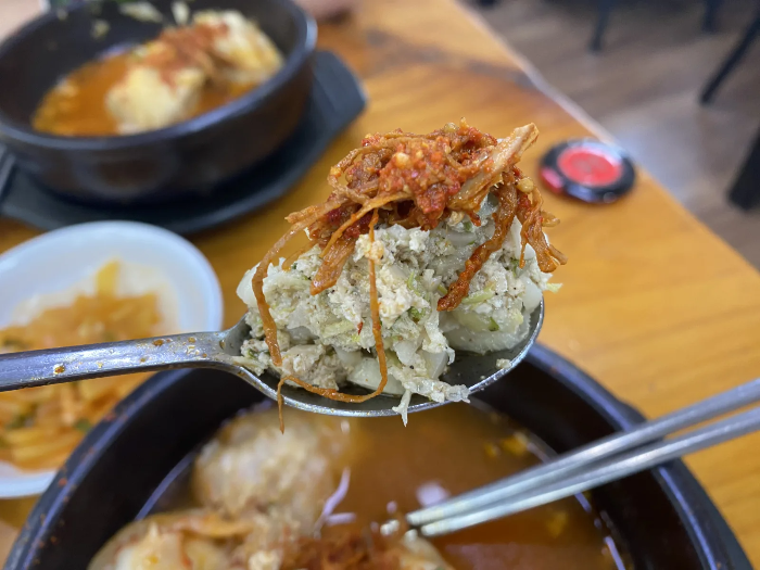 만두피는 쫄깃하고, 속은 두부와 고기, 채소가 적절히 어우러져 정말 담백하고 깔끔해요. 자극적인 맛에 길들여진 분들이라면 처음엔 '음?' 할 수도 있는데, 먹다 보면 그 깊고 은은한 맛에 중독될 거예요!